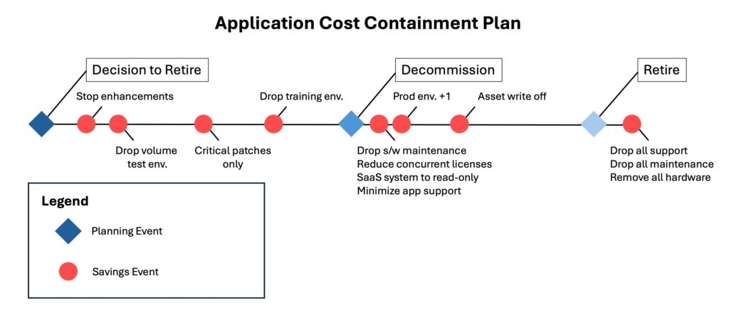 There is a common misconception that savings from an application retirement are realized at the time of retirement. In reality a large portion of the savings can be realized at the time of decommissioning, and with good planning savings can be realized earlier in the retirement lifecycle.